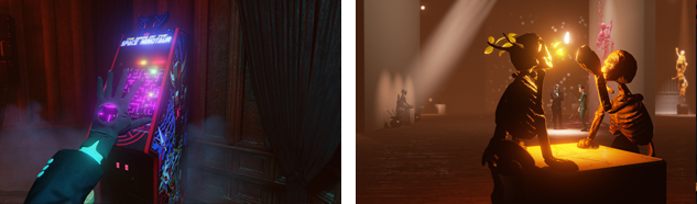 Les informations restent relativement floues vis à vis des moyens d'y parvenir et le seul exemple dévoilé sera par la réussite d'actions dans un mini-jeu sur borne d'arcade ! Les effets des modifications dans le passé vers le présent ne se feront bien sûr pas attendre et il faudra tenter de satisfaire la foule en créant des univers artistiques originaux. The Black Glove devrait donc présenter une certaine rejouabilité, les combinaisons semblant être assez variées !