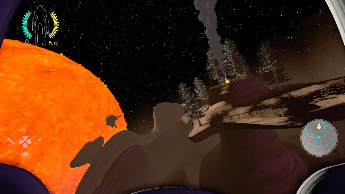 Petit rafraichissement de mémoire pour ceux et celles qui n’auraient pas suivi toute l’affaire. Outer Wild est un jeu d’exploration atypique dans lequel notre héros voyage de planète en planète à la recherche de mystères. Mais contrairement à un No Man’s Sky qui propose un minimum de réalisme, Outer Wilds nous offre l’opportunité de visiter d’étranges contrées à bord d’une navette spatiale mignonne à croquer. Et après un long voyage éreintant, de se reposer au coin du feu avec pour seuls témoins une nuée d’étoiles brillantes et quelques chamallows grillés.