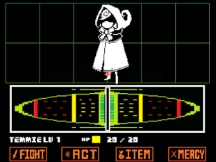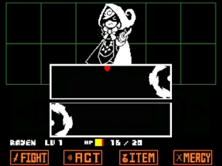 Pendant deux mois, Taxiderby s'est amusé à cloner le système de combat d'Undertale afin d'y placer son propre adversaire : Red, une jeune fille aux airs de petit chaperon rouge probablement volontaire. Les habitués du jeu ne seront pas dépaysés une seule seconde, on y retrouve les mêmes éléments que les affrontements classiques qui peuvent là aussi se terminer de différentes manières. C'est l'occasion par ailleurs de découvrir le système de combat pour les autres, qui permet d'éviter de prendre le moindre dégât avec un peu d'adresse. L'inventaire est bien rempli pour débuter le duel, et ça ne sera pas de trop !