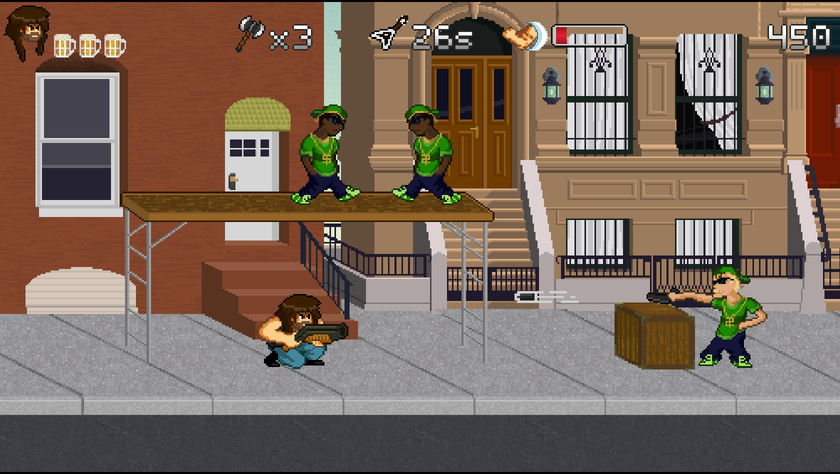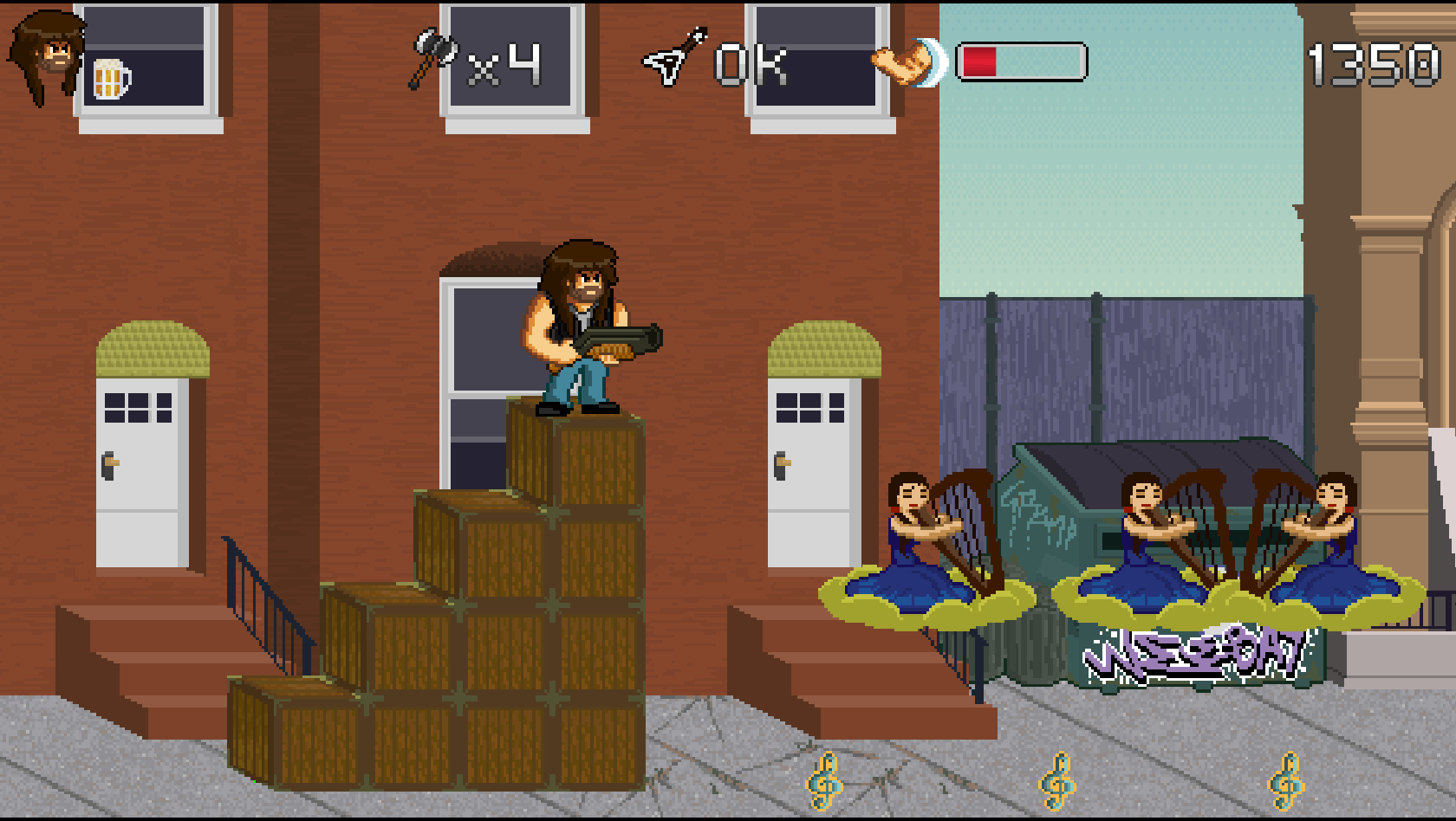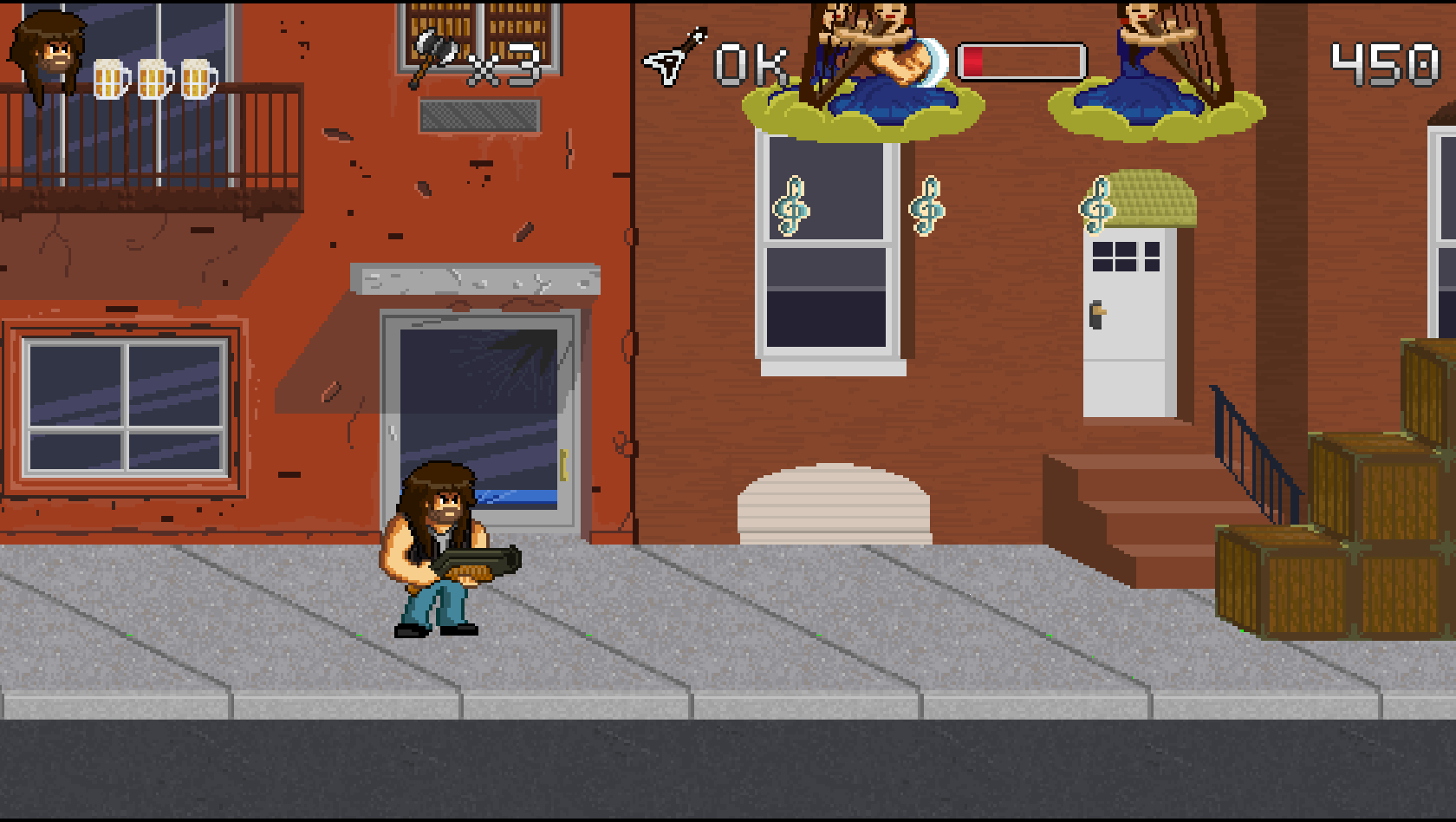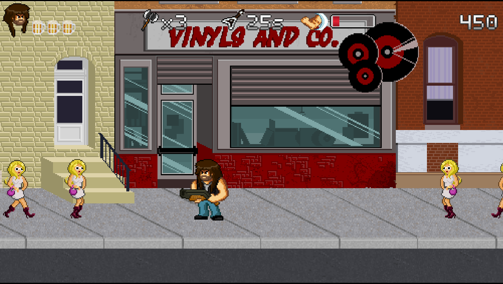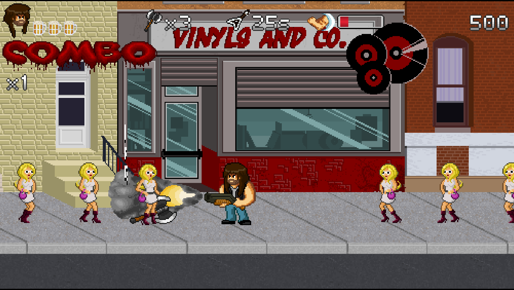 B for Badass est un jeu de type run'n gun qui met l'accent sur le scoring et le skill ! Avec la musique comme thématique principale, à vous de dézinguer les gens qui ont volé la bière du héros que vous contrôlez : Garett B. Hustain.