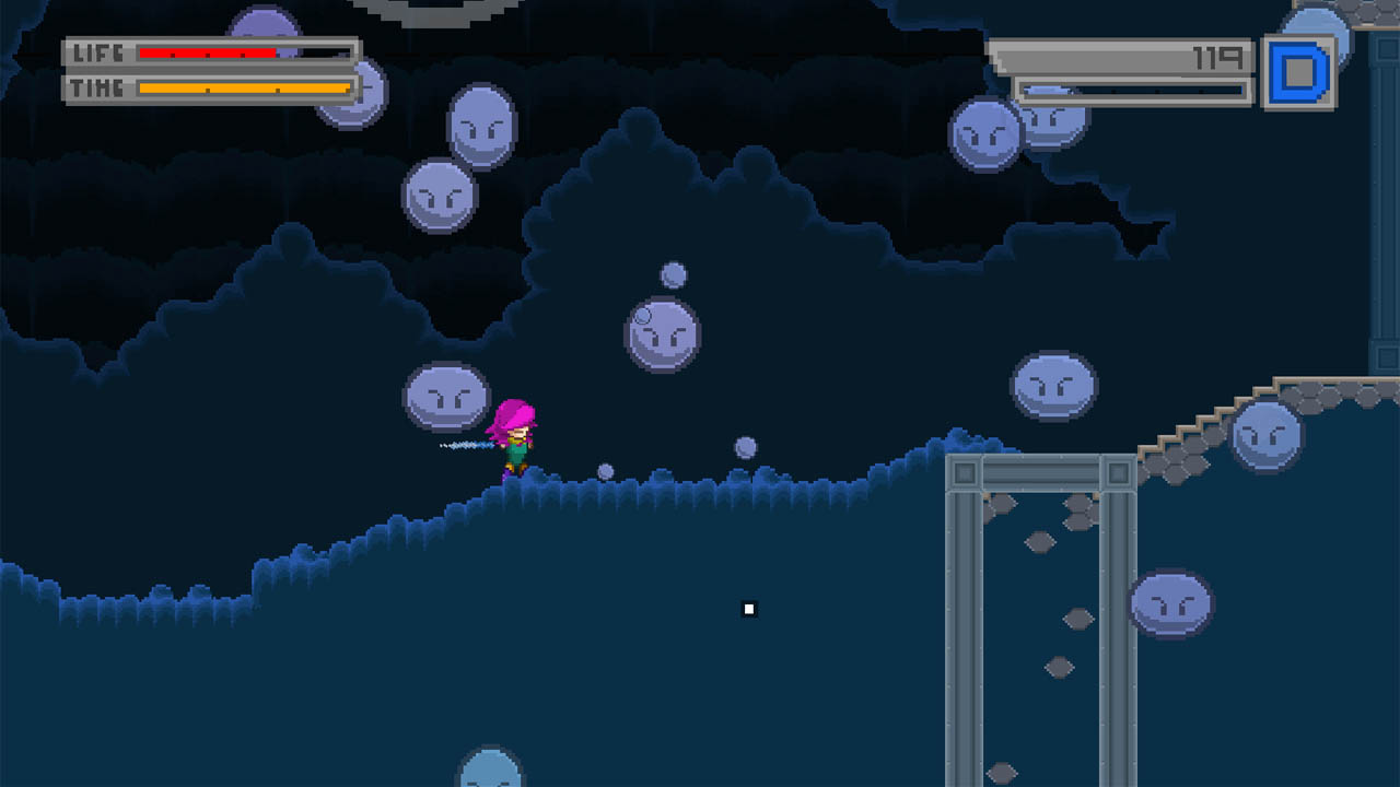 Amis joueurs nostalgiques, vous allez sans nul doute trouver votre bonheur avec Bleed ! Cette démo sera l'occasion pour vous d'essayer un jeu d'action typé "rétro" doté d'un gameplay exigeant mais diablement attractif. En effet, si comme dans tout bon "run & gun" il sera possible de se défendre contre des hordes d'ennemis avec plusieurs types d'armes, c'est bel et bien les systèmes de triple-dash et de ralenti qui feront tout le charme du titre. De l'esquive en veux-tu en voila, afin de déjouer pièges et attaques ennemies, autant vous dire que Bleed est un modèle de rigueur qui a son charme.