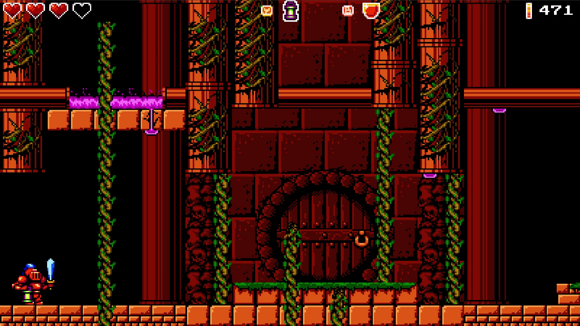 Retrouvez vos souvenirs dans ce metroidvania aux commandes d'une armure rouge possédée et de graphismes NES.