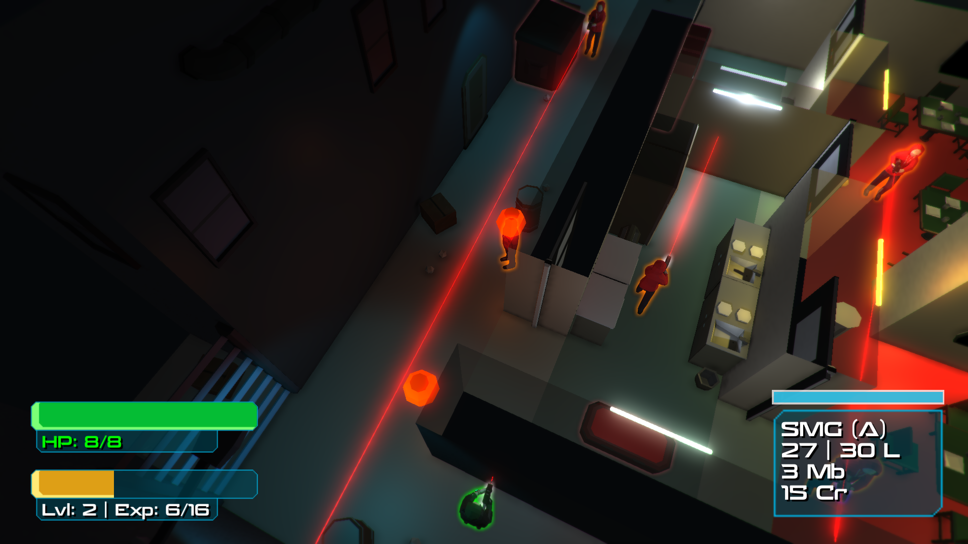 Top-down shooter futuriste, Defragmented est ce qu'on pourrait résumer comme un Hotline Miami cyberpunk. Néanmoins, il s'en démarque en ajoutant notamment une partie RPG avec l'évolution de son personnage au fil des combats.
