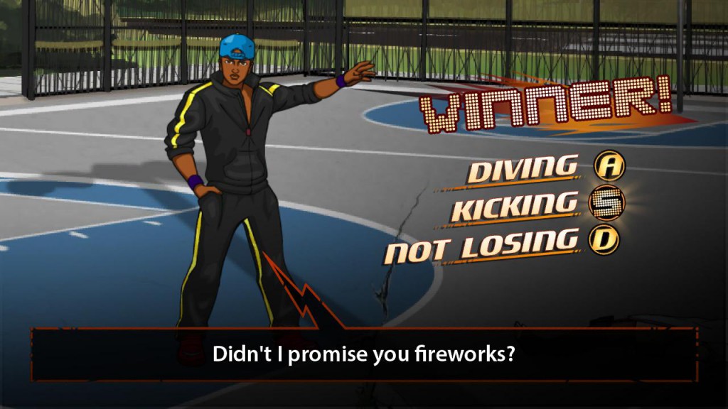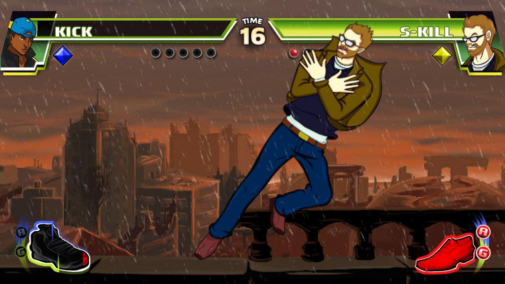 Divekick est le premier jeu mondial de combat à deux boutons. Il dégage l’essence de ce genre de jeu de combat simplement avec deux boutons sans l’utilisation de la croix directionnelle (d-pad). L’accent du jeu de Divekick démontre la profondeur qu’un simple mouvement comporte et introduit (ou renforce) les habiletés fondamentales de ce genre: jeux psychologiques, l’espace, synchronisation et réaction rapide.