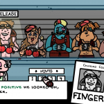 Loin de chercher à égaler la profondeur et la rejouabilité d’un The Binding of Isaac, Fingered est une sorte de « Qui est-ce ? » qui ne devrait pas vous occuper plus de quelques heures, à moins de vouloir vous acharner à remporter tous les succès Steam. Pour 1,99€, nous avons là un petit jeu qui certes, ne supporte pas le mode plein écran (sommes-nous bien en 2015 ?) mais qui est bourré d’humour et de références bien débiles.