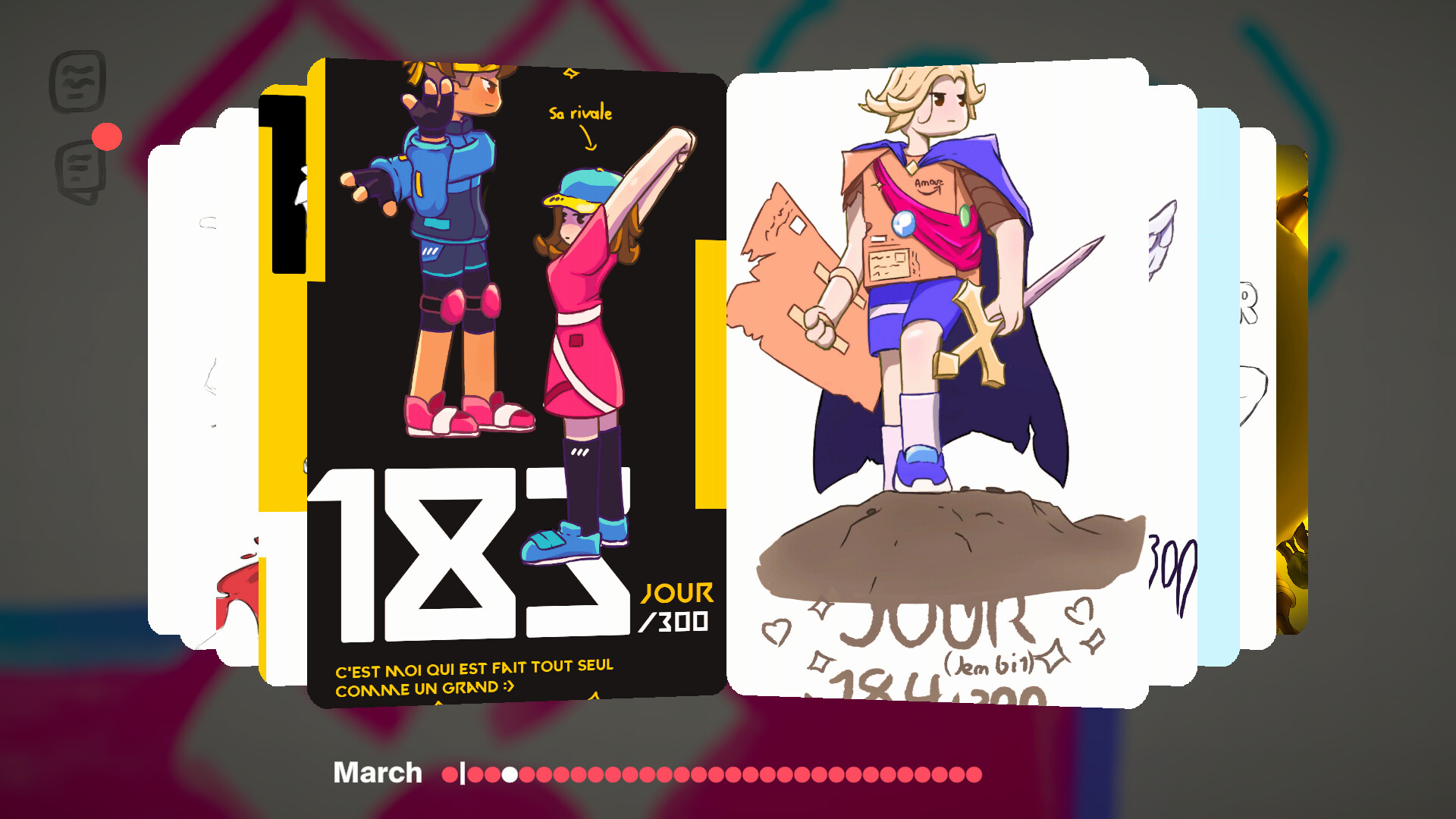 GRIBOUILLE est un jeu de plateforme nous faisant explorer un carnet de dessins au travers de pages dessinées quotidiennement pendant des centaines de jours.