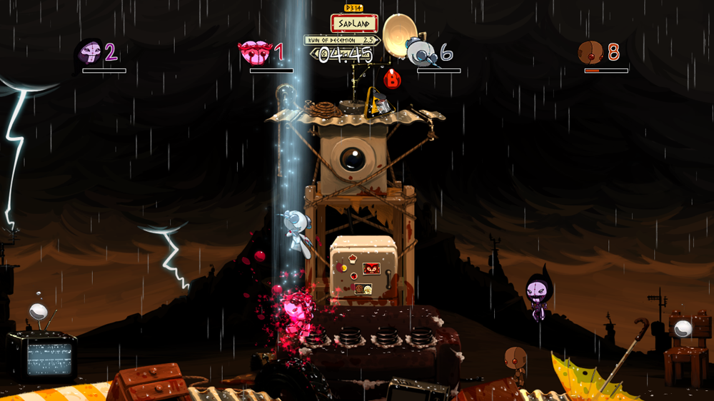 Soyez prêt pour de folles batailles avec vos amis dans les arènes colorées de Jamsouls ! Découvrez plusieurs modes de jeu comme le Deathmatch pour montrer à tout le monde qui est le boss, le mode capture de drapeau permettant de créer ses stratégies afin de faire pleurer vos opposants et le délirant mode football où il faudra marquer des buts à tout tout en évitant de se faire écraser. Du fun en barre !