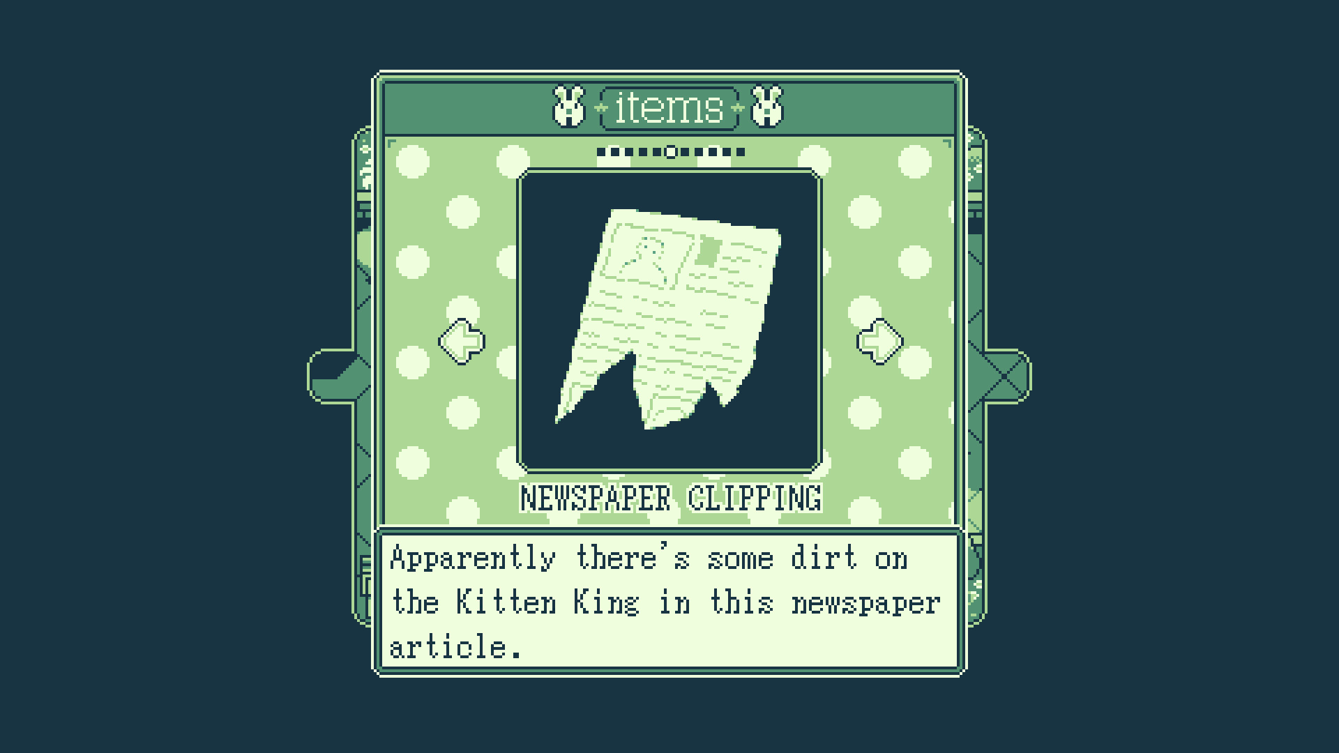 C'est un petit jeu d'enquête qui reprend les codes graphiques des jeux gameboys jusqu'à n'avoir que de gros pixels et dégradé de vert.