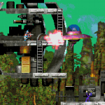 Moons Of Darsalon est un jeu d'action plateforme rétro de science fiction dans lequel on prendra les commandes d'un personnages tentant de sauver des mineurs.