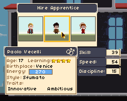 Dans ce jeu de gestion, organisez votre guilde de peintres afin de la faire prospérer. Recrutez et entraînez de nouvelles recrues pour faire face à la recrudescence de commandes !