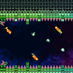 Dans ce runner à deux boutons, maintenez vous en l'air avec votre arme ou défoncez ce qui se dresse sur votre passage pour récupérer de petites boules lumineuses sur votre route.