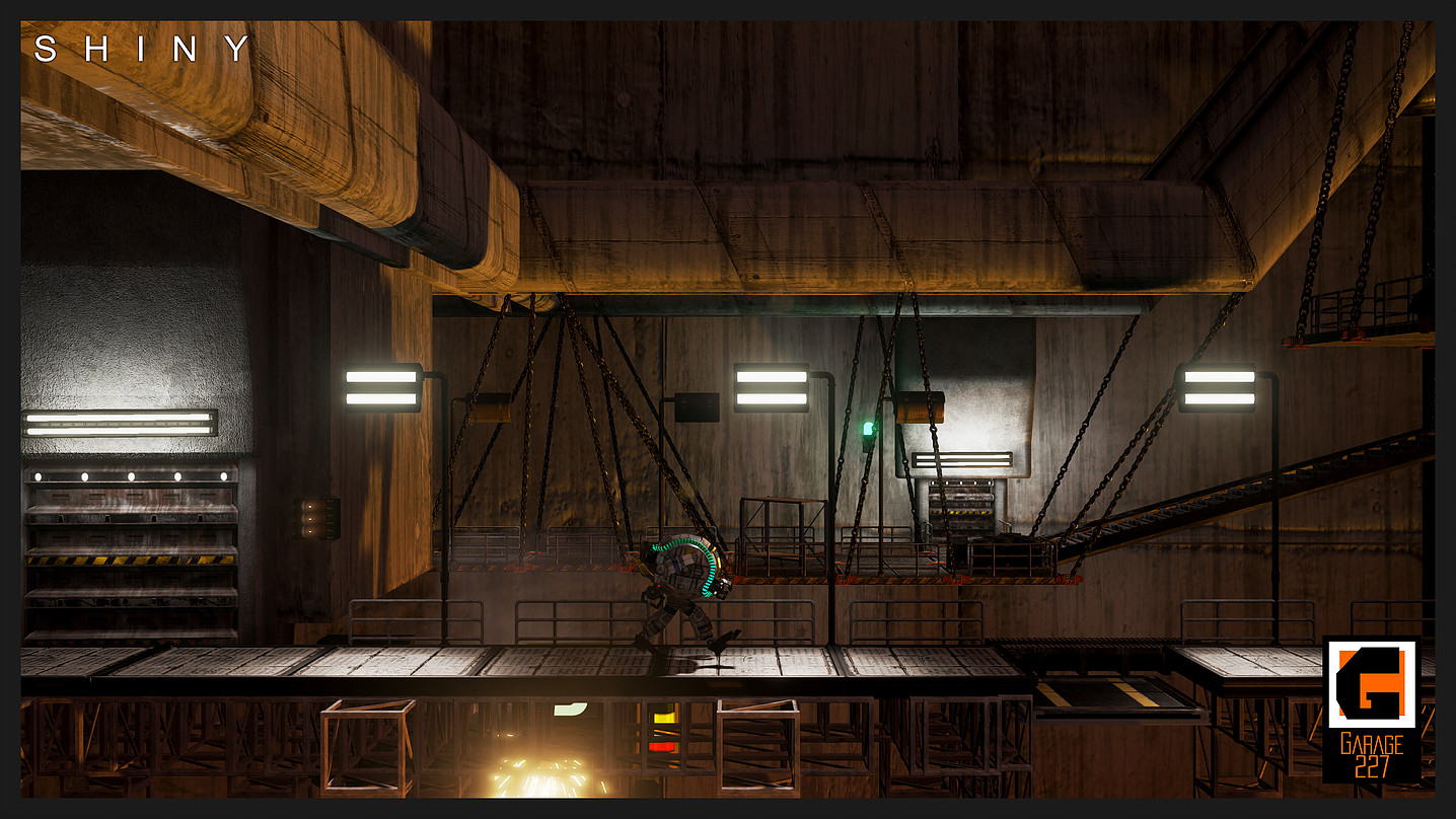Shiny est un plateforme classique dans lequel nous sommes aux commandes d’un robot nommé Kramer 227 qui pour sauver les siens de la destruction, va parcourir le monde condamné d’Aurora à la recherche d’une échappatoire.