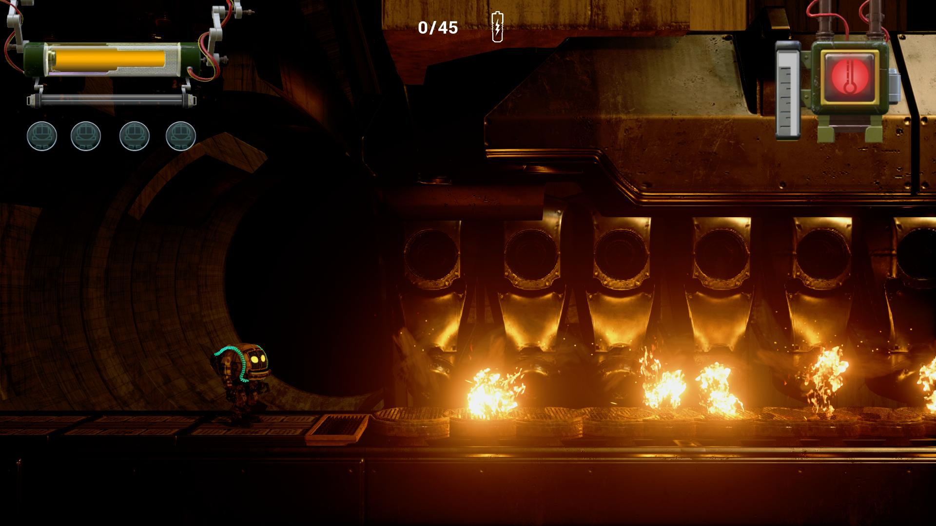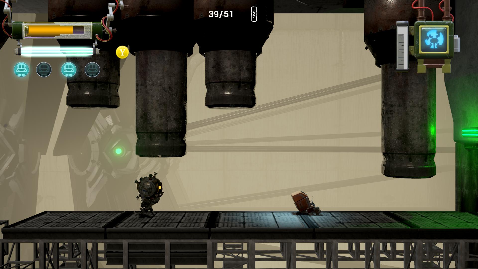 Shiny n’excelle dans aucun domaine. Il n’est ni très original ni particulièrement marquant du côté de sa direction artistique. Shiny n’est pas un jeu mauvais loin de là. Le héros, Kramer, est un mignon petit robot – surtout quand il saute, regardez ses yeux – et le gameplay marche convenablement. Mais voilà, à force d’être moyen partout, nous ne retenons finalement pas grand-chose de ce jeu qui, avec un peu plus d’inspiration, aurait certainement fait un meilleur plateformer qu’il ne l’est à l’heure actuelle.