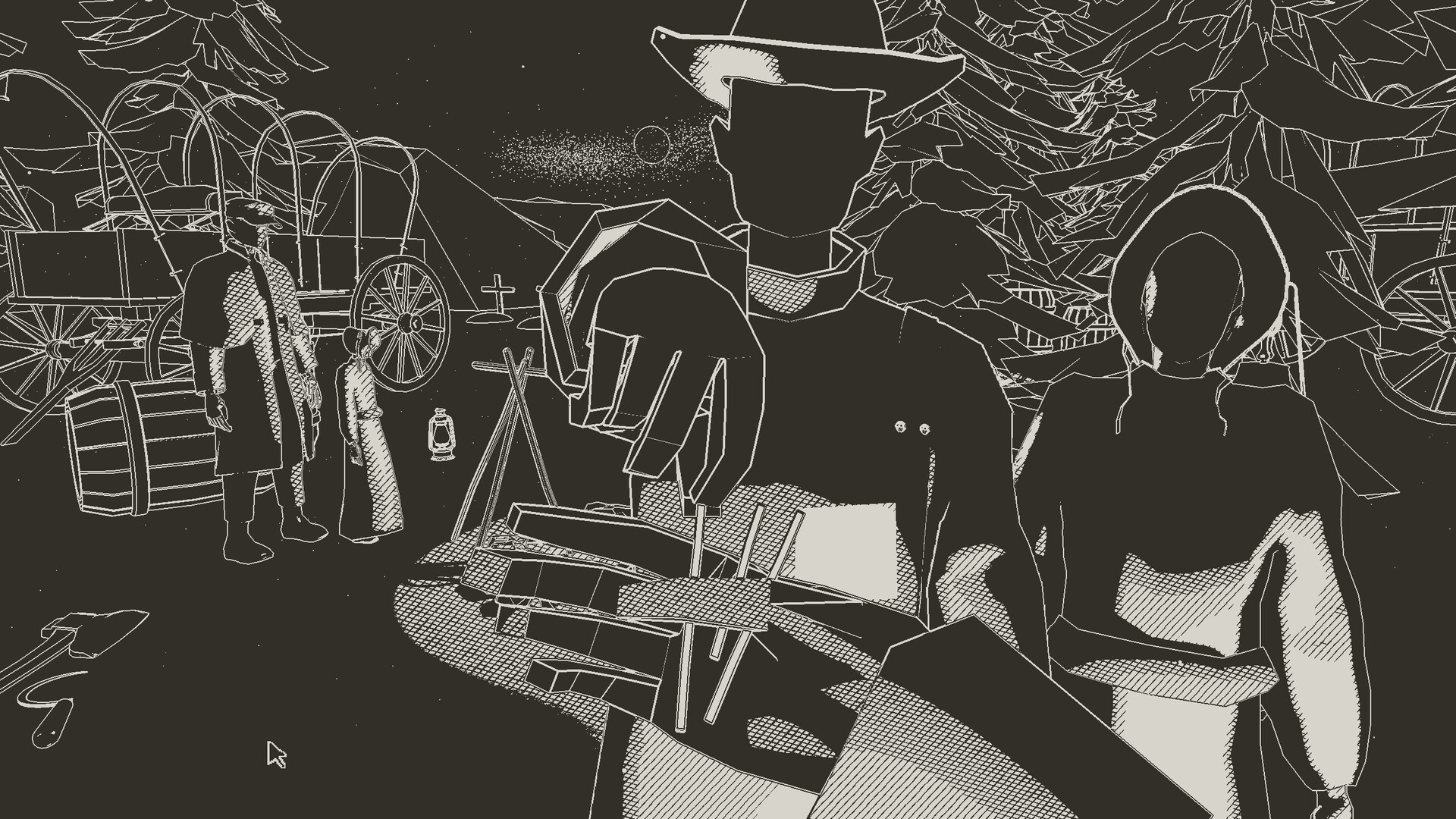 WAGON est un jeu de survie avec un système de cartes, se déroulant durant un voyage en hiver 1845 sur la route de l'Oregon, mêlant une esthétique rappelant Return of the Obra Dinn et un gameplay proche de Stacklands.