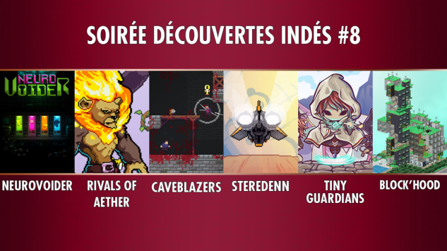 Elle vous avait manqué la semaine dernière, la voici de retour : La soirée indécouvertes (cliquez pour vous mettre dans l'ambiance) ! Nous retrouvons notre rythme normal avec 6 jeux indés présentés au cours de la soirée, chacun durant une vingtaine de minutes !