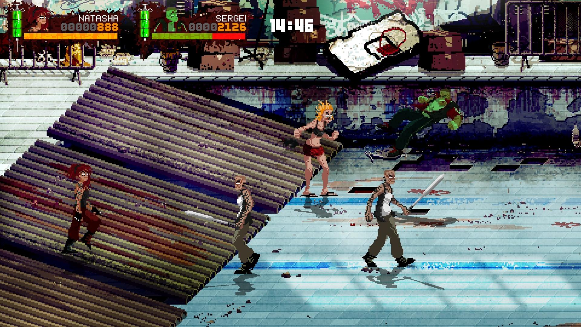 Si l’expression « faire du neuf avec du vieux » peut paraitre désuète en 2016, c’est pourtant celle qui nous vient à l’esprit en jouant à Mother Russia Bleeds. Nous sommes bien entendu coutumier à cette pratique, le jeu indé se fait fort depuis plusieurs années de remettre aux goûts du jour les trésors vidéoludiques de notre enfance. Ici, il est question du beat’em all, le défouloir par excellence à la subtilité douteuse qui remplissait nos bonnes vieilles salles d’arcades pendant la fin des années 80 et le début des années 90.