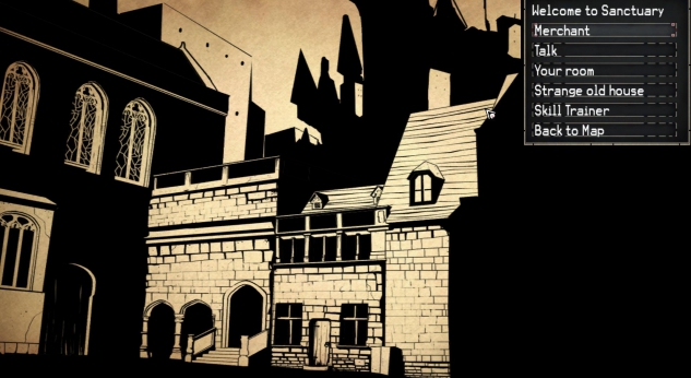 Dans Paper Sorcerer, vous incarnez le sorcier le plus puissant de l'univers. C'est un être maléfique, qui représente une lourde menace pour le royaume qui décida d'envoyer quatre valeureux chevaliers pour le vaincre. Hélas, ces derniers n'en ont pas la force mais ils ont en leur possession un livre sacré, le Librum, à l'intérieur duquel ils vont enfermer le vil esprit. Vous l'aurez compris, on contrôle ici le méchant et on va devoir tuer des gentils pour s'extirper de ce maudit bouquin. Après quelques minutes de jeu, on peut d'ores et déjà faire deux constats : "Ouah" et "Aaaaaah" ! (Comment ça ce n'est pas clair ?) Première chose, la direction artistique et le parti pris du jeu en noir et blanc sans nuance de gris est tout bonnement génial. Cela confère à l'ensemble de l'aventure un côté old school mais avec une technique plus moderne, assurée par des graphismes fins ; le tout pour le plaisir de nos rétines. Il est à noter que contrairement aux apparences, on joue en vue à la première personne tout en étant libre de nos déplacements, ce qui assure un gameplay très agréable et qui pousse à l'observation des décors pour y dénicher coffres et secrets. D'autre part, vous allez lire des pavés complets durant la première demi-heure de jeu, nécessaires à l'établissement des règles et la présentation des personnages. Quand l'unique développeur de ce jeu nous promet une expérience sensiblement proche à celle d'un jeu de rôle papier, il ne ment pas ! L'anglais utilisé est accessible (ouf !) mais il faudra tout de même ne pas avoir peur de la lecture car le titre ne comporte aucune mise en scène : tout est écrit !