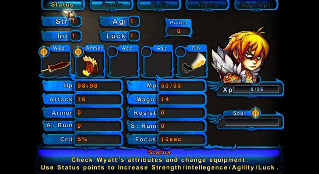 Valdis Story : Abyssal City est un titre qui dans sa structure est assez proche des Castlevania de l'époque GBA/DS. En gros, il s'agit d'un beat'em all scénarisé à monde ouvert, dont les chemins deviendront accessibles dès lors que vous obtiendrez certaines capacités, utilisant des aspects de RPG et un système de forge pour se créer de l'équipement. Loin de toute flemmardise, les développeurs ont également pensé à faire un style de combat et un arbre de talent différents pour Wyatt, Reina et les deux autres héros que vous pourrez contrôler lors d'une mise à jour future. Parlons donc maintenant un peu plus précisément du système de combat (et pour ce faire, nous partirons du principe que vous jouez à la manette).