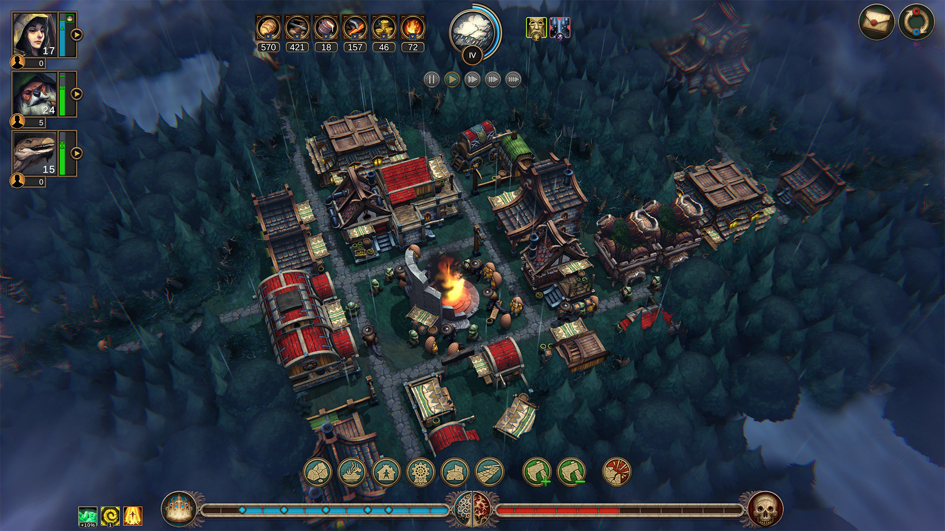 Against the Storm est un jeu de gestion de colonie et de survie aux éléments de rogue se déroulant dans un monde où les tempêtes font rage à longueur de temps. L'objectif sera de créer des colonies pour récolter le maximum de ressources permettant d'améliorer une ville principale entre les parties. Le jeu est disponible en accès anticipé sur Windows via Epic pour 15,99€.